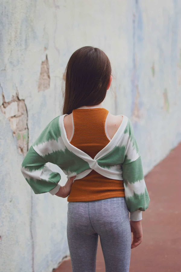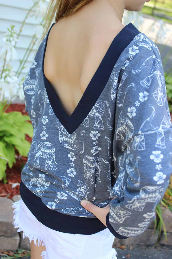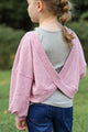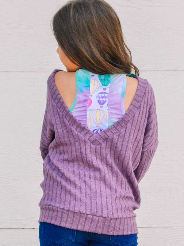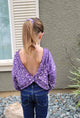 The open back features and relaxed fit makes this the perfect sweater to layer over all your favorite summer bralette tops and tanks!