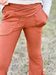 The Hallie Flares feature a legging fit up top and a flared hemline at the bottom. Combine that with a trendy crossover waistband and pockets- these are sure to be a wardrobe staple!