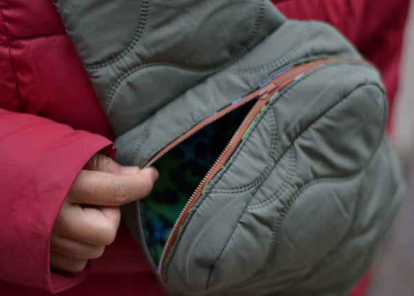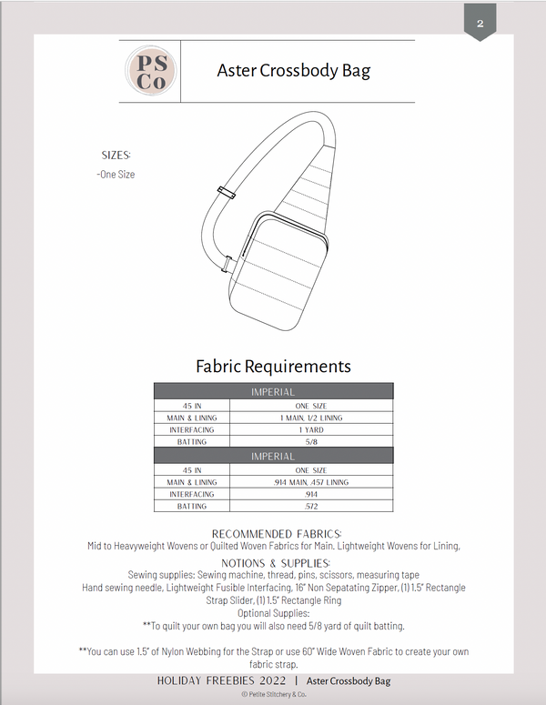 Aster features an adjustable strap and a drop in lining for easy zipper construction!