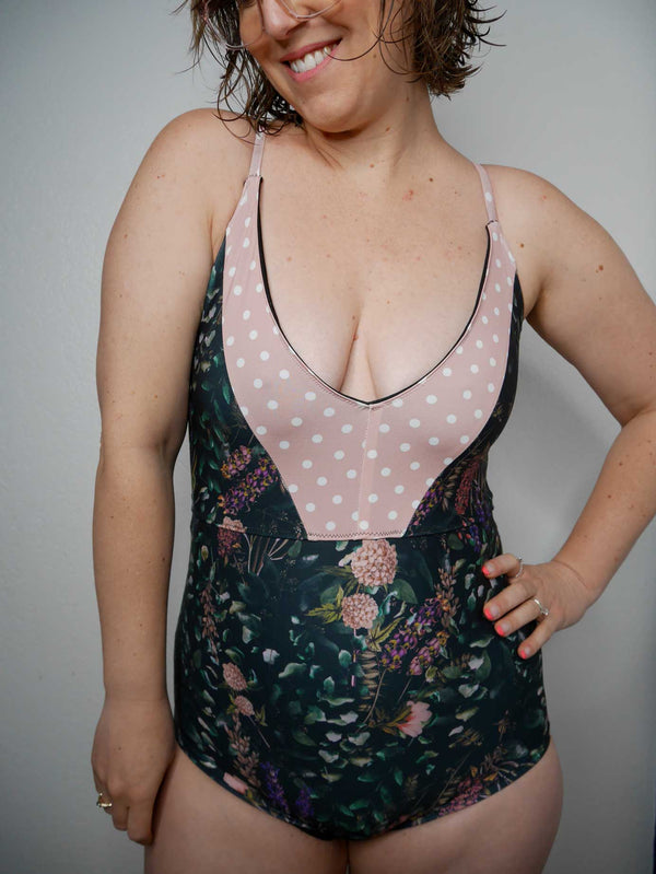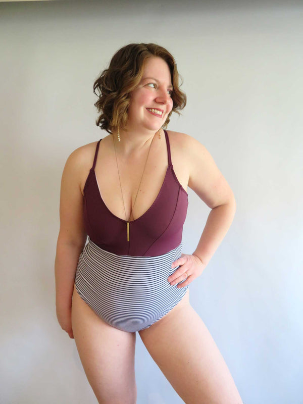 Discover the Darby One Piece Swimsuit—a blend of modern style and retro vibes, offering customizable options to suit your personal taste. With choices like modest or daring necklines and versatile bottom cuts, the Darby caters to every preference, all while flattering your figure with its clever seam lines and color blocking possibilities. Beyond the beach, its sleek design allows for endless styling options, making it a chic wardrobe staple. Whether you're lounging poolside or out for summer adventures, the Darby promises to make a statement with its timeless sophistication and playful charm, inviting you to embrace its versatility.