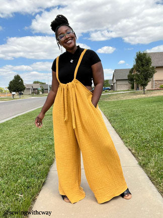 A staple for any wardrobe, the Freya is an effortless jumpsuit that can be dressed up or down, anytime of year! The relaxed fit allows for it to be made in light to mid-weight knits or wovens, giving you options for so many different looks with just one pattern.