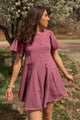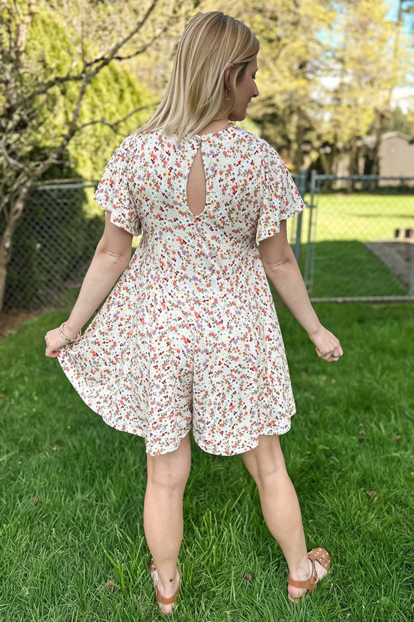 The bodice features a classic crew neckline and flows into flared shorts with godets for added fullness and a skirt-like look. Choose from tank, flutter, ¾ sleeve, or long bell sleeve options to create everything from a casual everyday romper to a statement warm-weather outfit. The keyhole back allows for easy on and off, and the optional chest pocket adds a fun finishing touch.