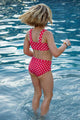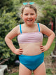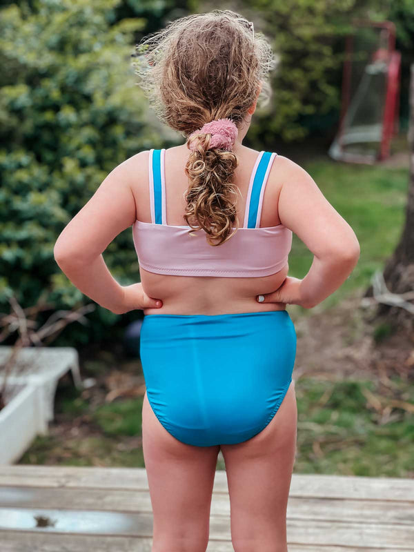 Introducing Cove, a simple swimsuit that feels both retro and new. The bandeau style top can be made on its own, or with the added convenience of optional straps for customizable wear. The high waisted bottoms include bikini and full coverage lines. This swimsuit lets you choose the options that feel right. Whether jumping in to the pool or playing on the sun on sandy shores, Cove elevates your swimwear game. Dive in to swimwear this season with Cove.