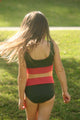 First, let's talk about some of the options! Fallon has both one piece swimsuit & bikini options so no matter your preference, we got you covered. You can choose between a strappy or tank bodice and cheeky or full coverage bottoms. Plus there are so many colorblocking options!