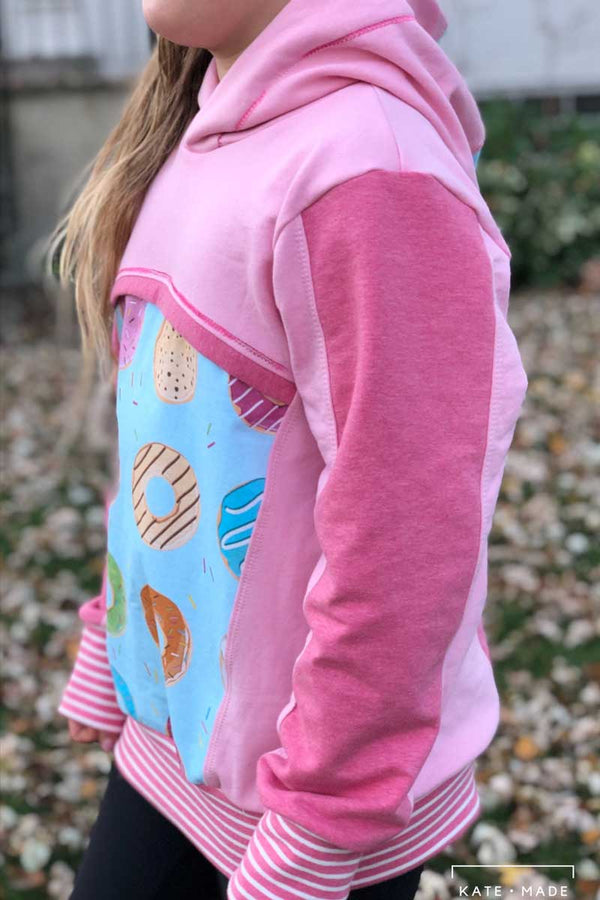 Foster is a relaxed fit unisex layering hoodie, perfect for throwing on over all those long sleeve tops that we gravitate towards when the chill in the air appears. In its simplest form, it's a hoodie with a kangaroo pocket for adults of all sizes and shapes. But with color-blocking options galore, it can be so SO much more! Add the hidden pocket and it makes it a unique option for those looking for something more than just another hoodie pattern!