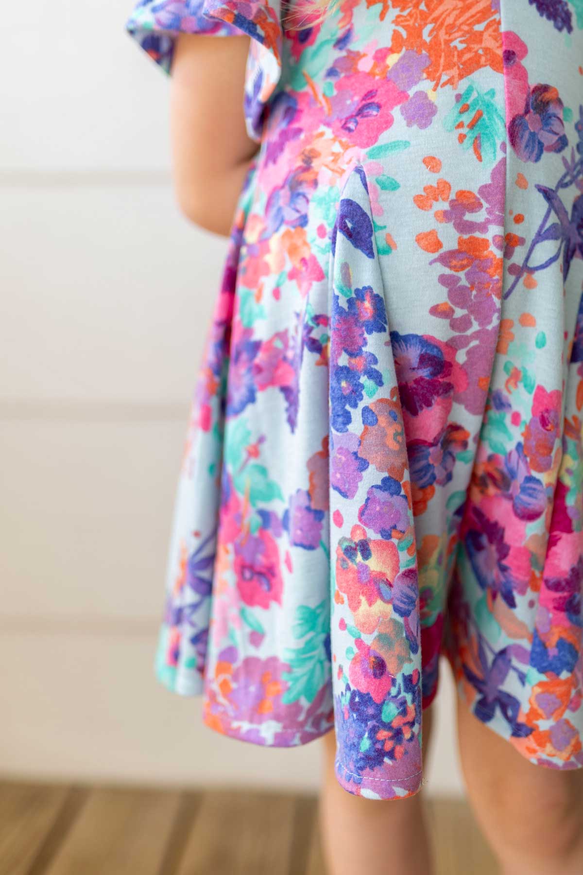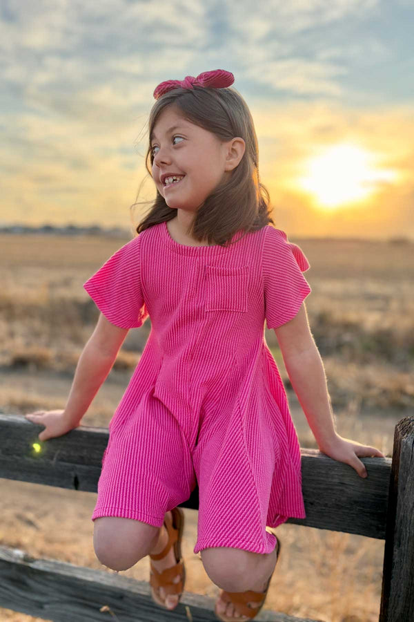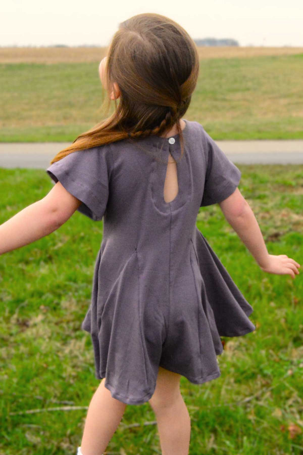 The Ginny Godet Romper is a breezy, comfortable kid’s romper sewing pattern designed for knit fabrics. With its relaxed fit and playful movement, Ginny is the perfect spring and summer staple.