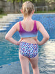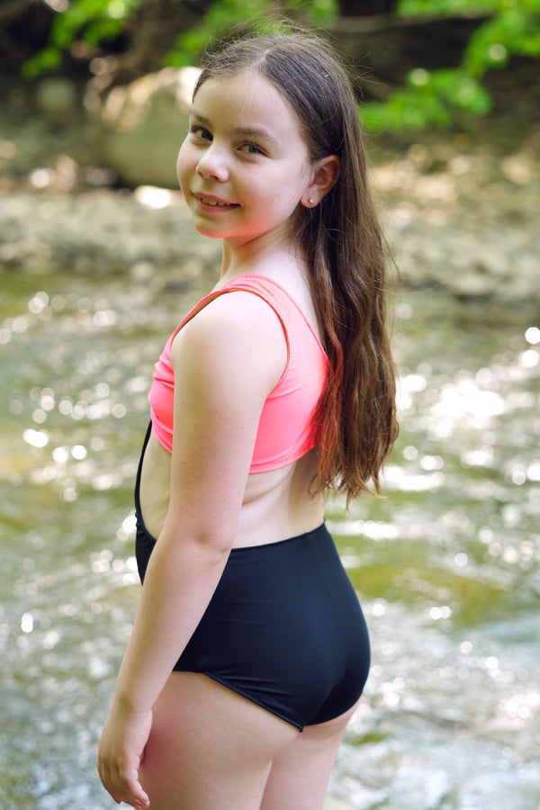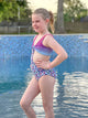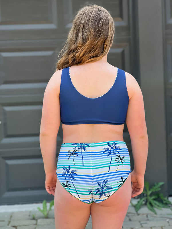 Kai is a fully reversible, sports bra top with full coverage bottoms.