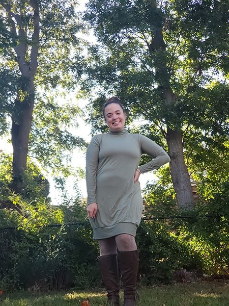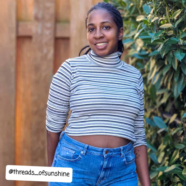 *Knit fabrics with at least 50% horizontal and vertical stretch, with great recovery. Double/Single brushed poly, cotton/bamboo lycra, modal, rib knits, and sweater knits are all great options.