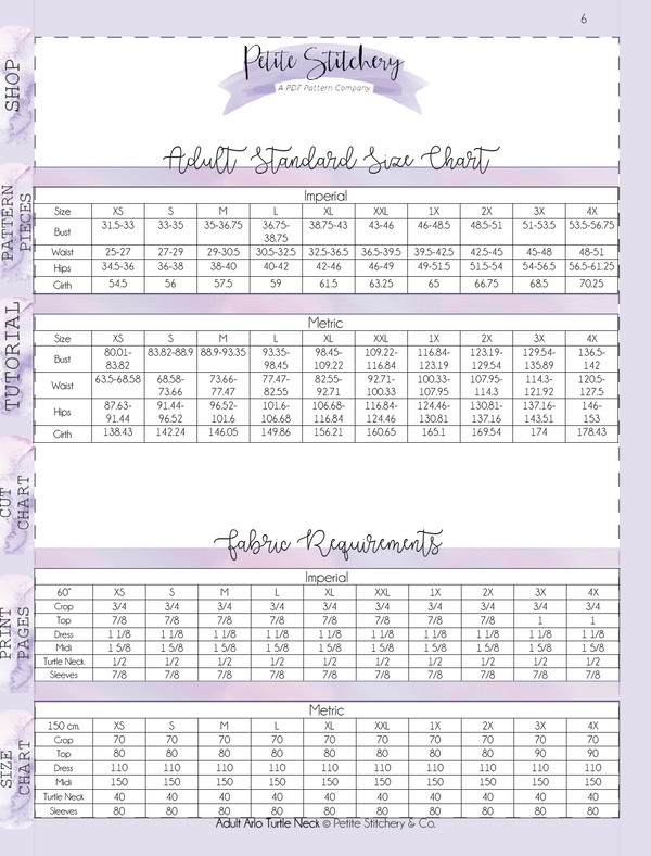 *Three different silhouettes--Fitted Top/Dress, Semi Top/Dress, Flared Dress